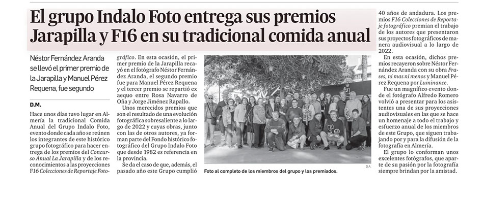 Premios primer lugar concurso La Jarapilla / Grupo Indalo Foto / Almería y F16